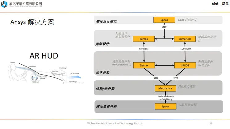 · ANSYS車載HUD整體解決方案:整合Zemax、Speos與Lumerical,實現(xiàn)光學(xué)設(shè)計、系統(tǒng)仿真與微納分析全流程協(xié)同,顯著提升開發(fā)效率與精度。