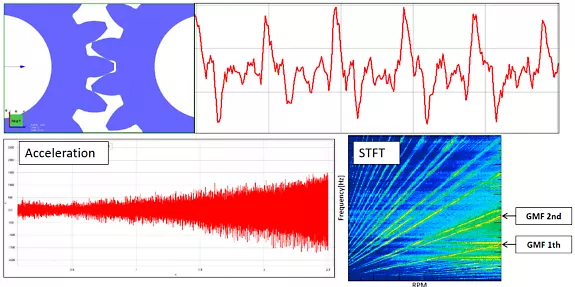 噪聲、振動與聲振粗糙度(NVH)特性分析:在汽車、工程機械等設備的傳動系統(tǒng)設計中,利用 Drivetrain Toolkit 分析傳動部件(如齒輪、軸、軸承等)在不同工況下產生的噪聲、振動情況,通過模擬計算得到瀑布圖(Waterfall color maps)和階次跟蹤數據(Order tracking data),與實際測試環(huán)境中的數據進行對比,優(yōu)化傳動系統(tǒng)的 NVH 性能,提高乘坐舒適性和工作環(huán)境友好性。