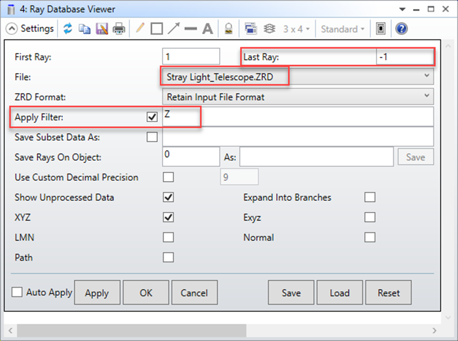 通過(guò)適當(dāng)?shù)卣{(diào)整第一條光線和最后一條光線字段,過(guò)濾器可以應(yīng)用到保存的數(shù)據(jù)庫(kù)的一小部分。或者,如果將最后一條光線設(shè)置為初始光線追跡中啟動(dòng)的光線的總數(shù),則會(huì)處理整個(gè)數(shù)據(jù)庫(kù)(或者,您可以簡(jiǎn)單地在最后一條廣線字段中輸入一個(gè)負(fù)值,例如-1)。