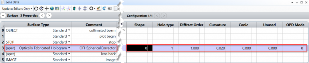 2.改變透鏡前表面(表面 #3)為光學(xué)構(gòu)造全息圖