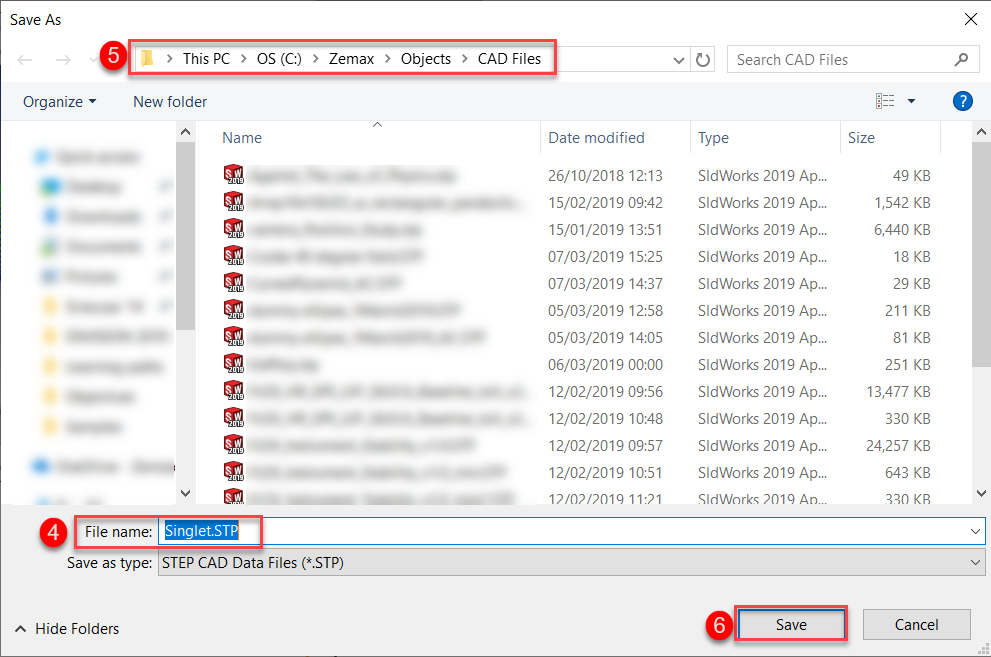 2.通過選擇文件類型 (File Type) 選擇要導(dǎo)出表面的格式 (OpticStudio支持導(dǎo)出為:STEP、IGES、SAT和STL格式);