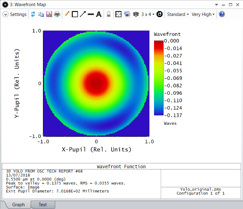 原始文件和 Zernike 等效文件都在附件中。如果添加更多波長(zhǎng),您將看到兩個(gè)文件在任何波長(zhǎng)下都給出相同的結(jié)果。然而,詳細(xì)的透射和其他偏振數(shù)據(jù)將不等效,因?yàn)閆ernike文件對(duì)原始文件中使用的涂層一無(wú)所知,并且仍然沒(méi)有辦法預(yù)測(cè)望遠(yuǎn)鏡的行為將如何隨場(chǎng)變化:仍然需要一組每個(gè)場(chǎng)的Zernike系數(shù)。