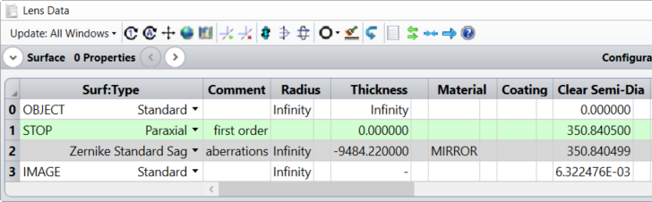 如果您使用的是全反射設(shè)計(jì),則可以使用Zernike標(biāo)準(zhǔn)凹陷表面來(lái)描述給定視場(chǎng)下所有波長(zhǎng)的光學(xué)系統(tǒng)像差,因?yàn)槿瓷湎到y(tǒng)不會(huì)遭受色差。