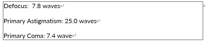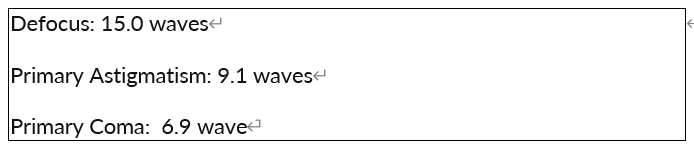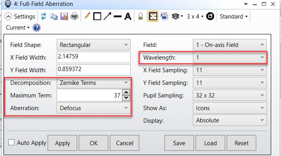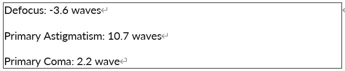 對(duì)于每個(gè)視場(chǎng)點(diǎn),軟件將波前擬合為一系列Zernike標(biāo)準(zhǔn)多項(xiàng)式,就像在Analyze…Wavefront…Zernike Standard Coefficients下所做的那樣。以下設(shè)置定義了需要顯示的Zernike像差項(xiàng):
