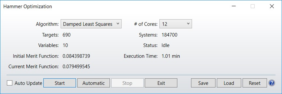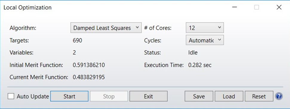 Zernike曲面的歸一化半徑設(shè)置為大于半直徑的固定值。在優(yōu)化過(guò)程中,如果該半徑不是固定的,則每次更新時(shí),都會(huì)在優(yōu)化期間在評(píng)價(jià)函數(shù)上產(chǎn)生一些變動(dòng)。