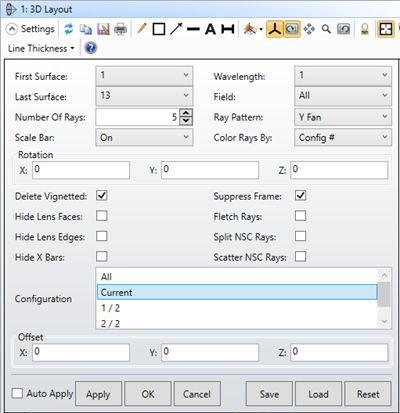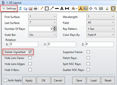 如果想要在布局圖中移除漸暈的邊緣光線,您需要勾選3D視圖的設(shè)置參數(shù)中的“刪除漸暈 (Delete Vignetted)”選項(xiàng):
