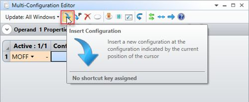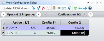 下面我們將使用多重結(jié)構(gòu)模擬反射光路。打開多重結(jié)構(gòu)編輯器(位于編輯器 (Editors) 組中的多重結(jié)構(gòu)編輯器 (Multi-Configuration Editor))并使用插入結(jié)構(gòu) (Insert Configuration) 按鈕插入一個(gè)新的結(jié)構(gòu)(或在鍵盤上點(diǎn)擊Ctrl+Shift+Ins)。