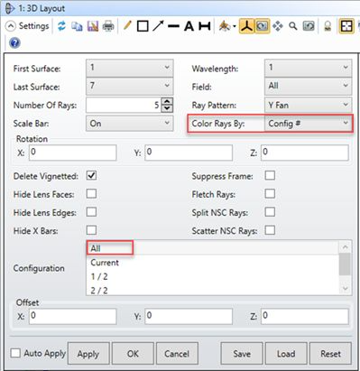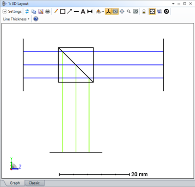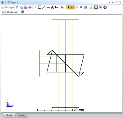打開3D視圖 (3D Layout)工具,并只在Y方向顯示5條光線,如下圖所示: