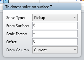 ?插入多重結(jié)構(gòu)操作數(shù)THIC提取表面5和6的厚度,在結(jié)構(gòu)2中設(shè)置拾取求解并設(shè)置縮放因子為-1。