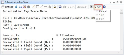 在鍵盤上點(diǎn)擊Crtl+A切換鏡頭數(shù)據(jù)編輯器為結(jié)構(gòu)2。現(xiàn)在,鏡頭編輯器的標(biāo)題欄中應(yīng)顯示“結(jié)構(gòu)2/2 (Config 2/2)”。