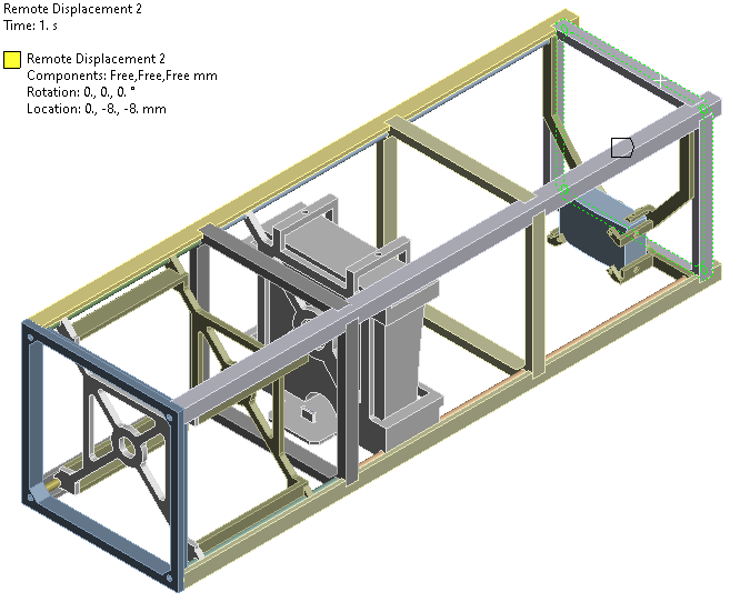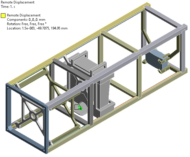 在結(jié)構(gòu)分析中,裝配體需要保持固定。對(duì)于光學(xué)分析來(lái)說(shuō),使用弱彈簧將導(dǎo)致模擬不夠精確。因此,整個(gè)組件是通過(guò) Remote Displacements 組合來(lái)固定的。傳感器平面的移動(dòng)將受到限制,因?yàn)閭鞲衅髯鳛橄衿矫娌⑶?OpticStudio 中無(wú)法對(duì)像面施加變形效果。旋轉(zhuǎn)在前框架處受到限制,因此不會(huì)把傳感器的彎曲當(dāng)做是整個(gè)裝配體的旋轉(zhuǎn)。