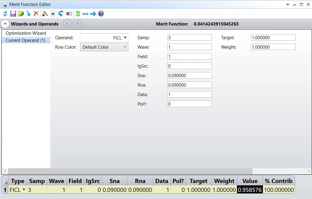 此時的文件在附加的存檔中保存為“after FICL optimization.zmx”。