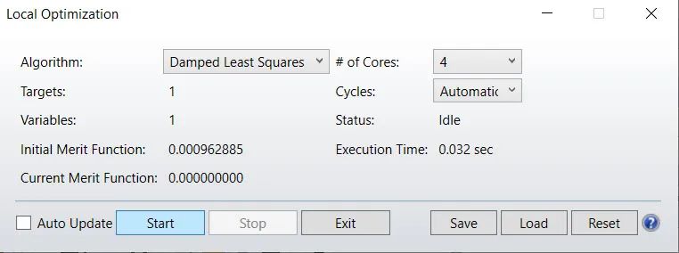 ·物體/鏡頭和鏡頭/圖像距離已手動設置為 0.1 mm,因為這大約是正確的值。此數(shù)字稍后將由優(yōu)化程序計算