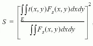 其中 Fs(x,y) 是源光纖振幅函數(shù),分子中的積分僅在光學系統(tǒng)的入射瞳孔上完成,t(x,y) 是光學器件的振幅傳輸函數(shù)。如果選中使用偏振,透射率會受到體吸收和光學涂層的影響。