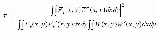 其中Fr(x,y)是描述接收光纖復振幅的函數(shù),W(x,y)是描述光系統(tǒng)出瞳波前復振幅的函數(shù),'符號表示復共軛。請注意,這些函數(shù)是復值,因此這是一個相干重疊積分。T 的最大可能值為 1.0,如果光纖振幅和相位與波前振幅和相位之間有任何不匹配,則會減小。