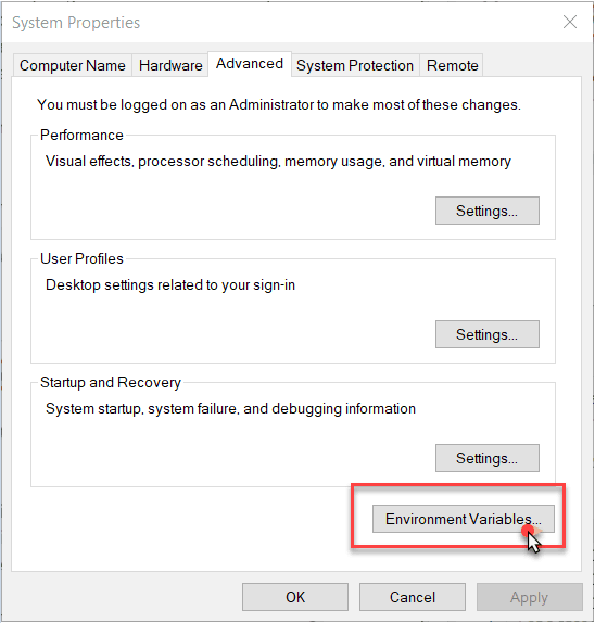 Python 安裝完畢后,我們需要更改 PATH 環(huán)境變量使其包含 Python 路徑。可通過單擊開始搜索欄,在其中搜索“環(huán)境變量”(或系統(tǒng)設(shè)置>高級(jí)>啟動(dòng)與恢復(fù)>環(huán)境變量)來完成此設(shè)置。