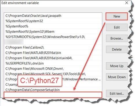 然后單擊"New"并進(jìn)入到 Python 目錄的路徑中。單擊 OK 后退出系統(tǒng)屬性對(duì)話框。
