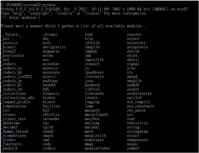 檢查是否安裝 pywin32 模塊的方法:CMD>Python>help(‘modules’)