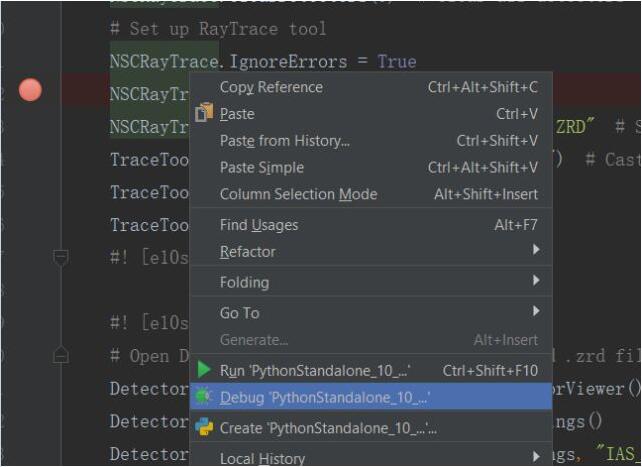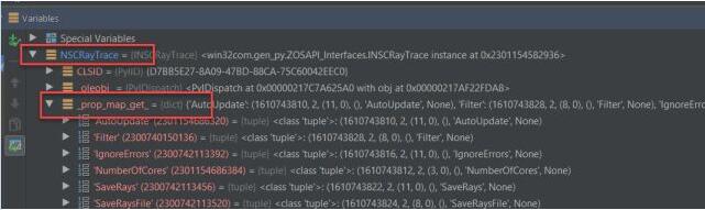 舉例來說,要檢查NSCRayTrace的屬性,可以在出現(xiàn)該對(duì)象(NSCRayTrace)代碼行的下方左側(cè)欄中(行序號(hào)旁邊)鼠標(biāo)左擊插入斷點(diǎn),再在主窗口的右擊菜單欄中選擇“Debug”(而不是選擇“Run”)。