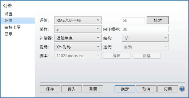 對應于公差數(shù)據(jù)編輯器中的41個公差操作數(shù)。因此,我們編寫的宏將用來存儲所有蒙特卡羅運行中的41個擾動數(shù)據(jù),然后進行蒙特卡羅分析。在本例中,選擇RMS光斑半徑作為公差分析標準: