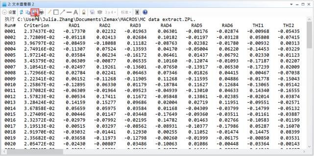 一般來說,設計者對由蒙特卡羅公差分析產(chǎn)生的單個擾動不感興趣。但如果保存所有的蒙特卡羅文件,那么文件中的信息是可以獲得的??赏ㄟ^ZPL宏來自動提取所需數(shù)據(jù)。點擊另存為可將結果輸出為文本文件進行其他分析。
