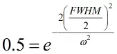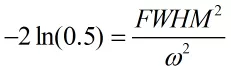 根據(jù)上式求解w,我們可以得到FWHM寬度和1/e^2的對(duì)應(yīng)關(guān)系:
