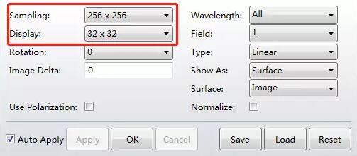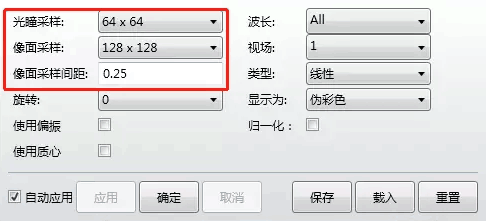 在分析參數(shù)設置中可以使用多種網(wǎng)格尺寸來顯示同樣的PSF數(shù)據(jù),可以設置如下圖所示參數(shù):