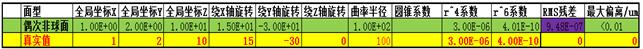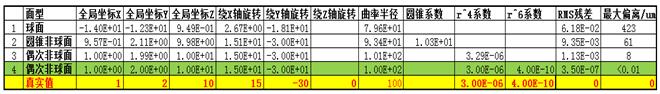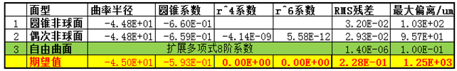 因為我們知道,該零件具有旋轉(zhuǎn)對稱特性,我們先從球面開始進(jìn)行擬合還原,然后采用偶次非球面(因為比較常用)逐步添加高次項系數(shù),進(jìn)行還原直至擬合殘差比較小。
