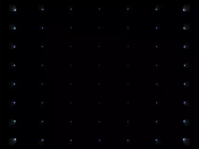 實(shí)際上這只是顯示器屏幕欠采樣導(dǎo)致的。輸入的圖像為640x480個(gè)像素,PSF網(wǎng)格也是如此。但是PSF網(wǎng)格顯示在更小的窗口。上圖所示的整個(gè)分析窗口只有493x440個(gè)像素,且網(wǎng)格區(qū)域只有三分之二的大?。哼@表示PSF網(wǎng)格處于欠采樣的狀態(tài)。如果將窗口開到最大,或者至少大于PSF網(wǎng)格640x480個(gè)像素的大小,整個(gè)網(wǎng)格應(yīng)如下圖所示: