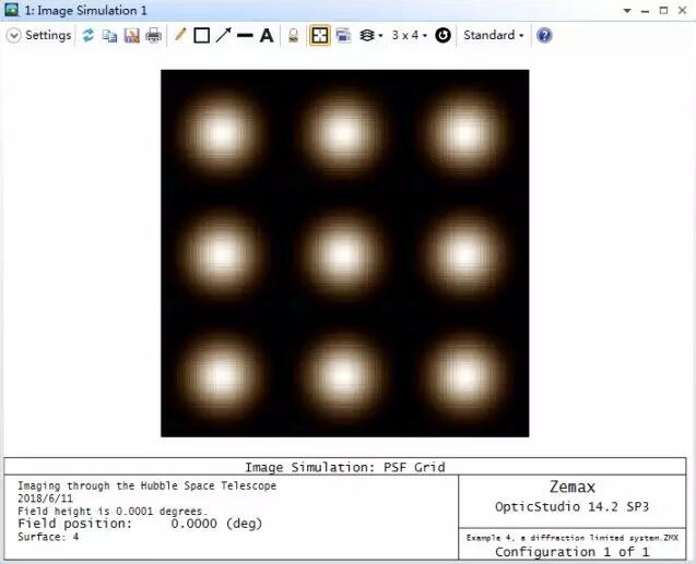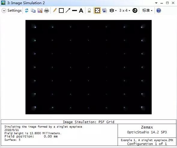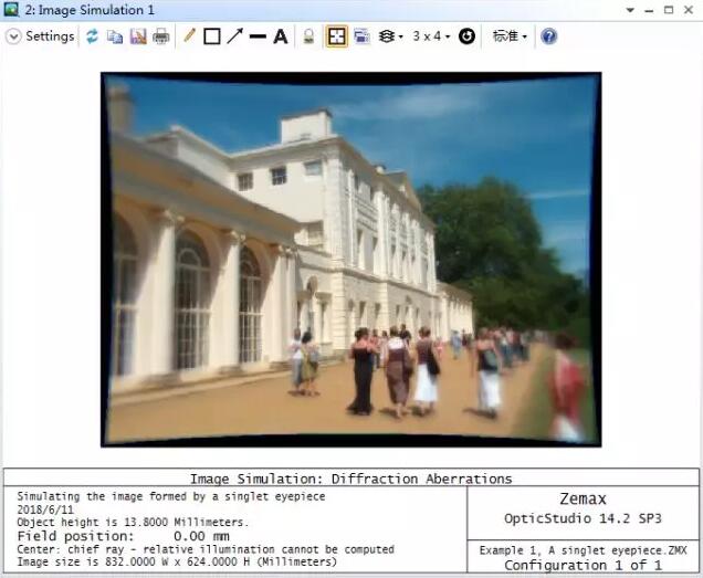 需要注意的是,PSF網(wǎng)格計(jì)算類型在PSF大于衍射極限20倍時(shí)自動(dòng)切換為幾何像差類型。圖像模擬功能會(huì)在任何滿足條件的點(diǎn)進(jìn)行衍射像差計(jì)算并在不滿足時(shí)切換計(jì)算方法。