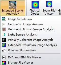 OpticStudio還支持另外幾種圖像分析功能,它們位于擴(kuò)展圖像分析(Extended Scene Analysis)選項(xiàng)卡下: