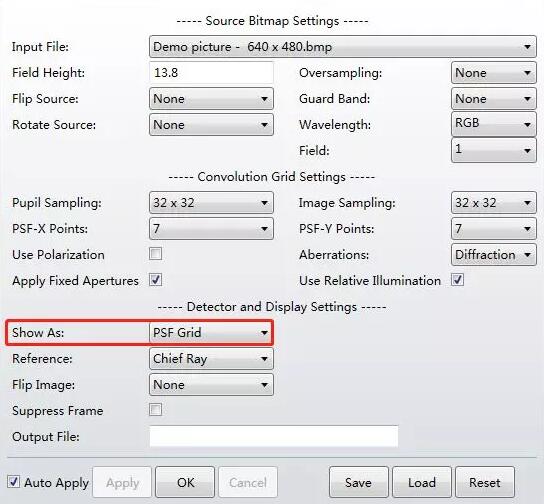4、在PSF網(wǎng)格正確設(shè)置后,將“顯示為”設(shè)為仿真圖來查看卷積后的結(jié)果。