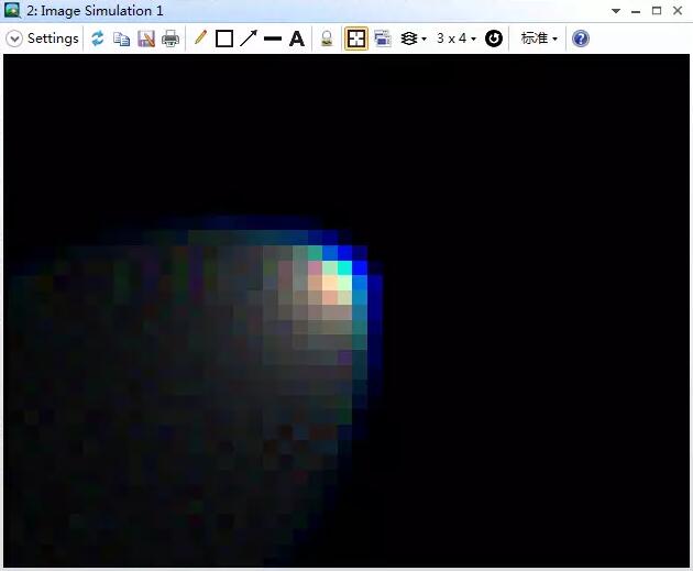 由于可以將.bmp和.jpg格式的圖片作為光源位圖經(jīng)光學(xué)系統(tǒng)進(jìn)行成像,因此和圖像模擬比較相近。通常來講,圖像模擬得到高信噪比的結(jié)果要比幾何位圖圖像分析的速度快很多。對(duì)于幾何位圖圖像分析來說,圖像信噪比與SQRT(n)成正比,其中n為每個(gè)像素追跡光線的條數(shù)。