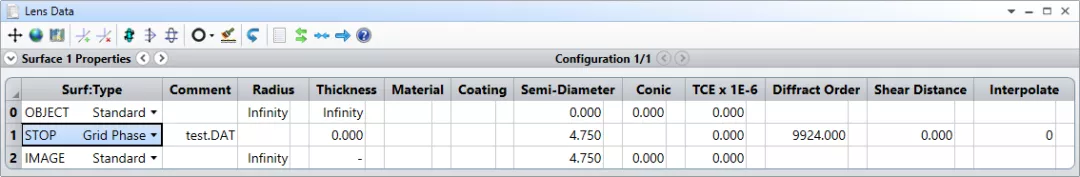 其中網(wǎng)格相位 (Grid Phase) 表面的衍射級(jí)次 (Diffraction order) 參數(shù)則輸入上面的換算值。 如下圖: