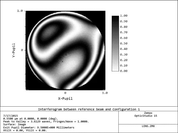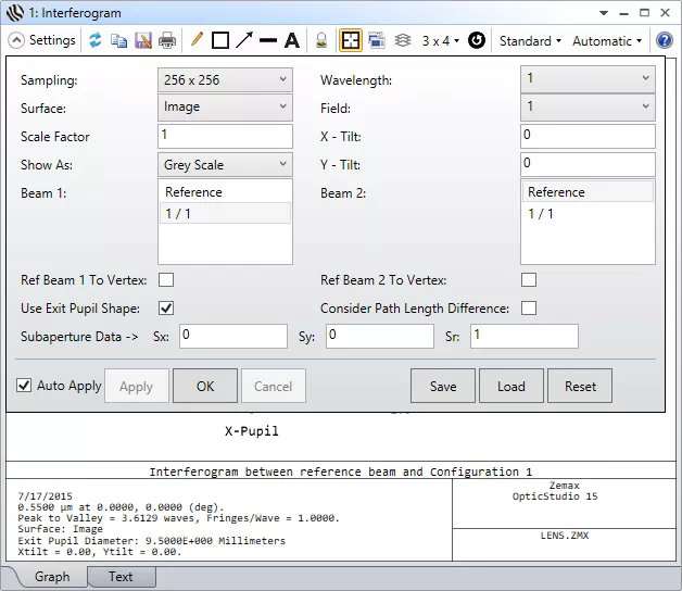 上面步驟完成后,如欲確認(rèn)結(jié)果,請(qǐng)打開工具選項(xiàng)卡中的 分析 (Analyze) > 波前圖(Wavefront) > 干涉圖(Interferogram)” ,并且設(shè)定如下: