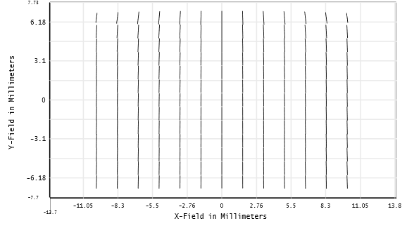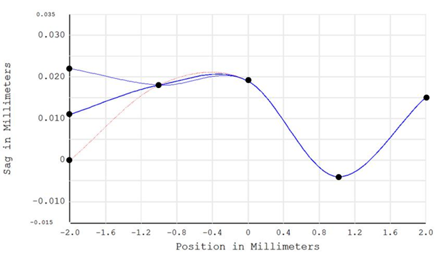 優(yōu)化結束后,我們可以看到一個局域的矢狀面(sagittal)曲率被加入目標的區(qū)域中以補償大部分的像散,同時又使non-local的表面數(shù)據(jù)維持不變。這樣的結果很接近我們原先對矢高的預期。
