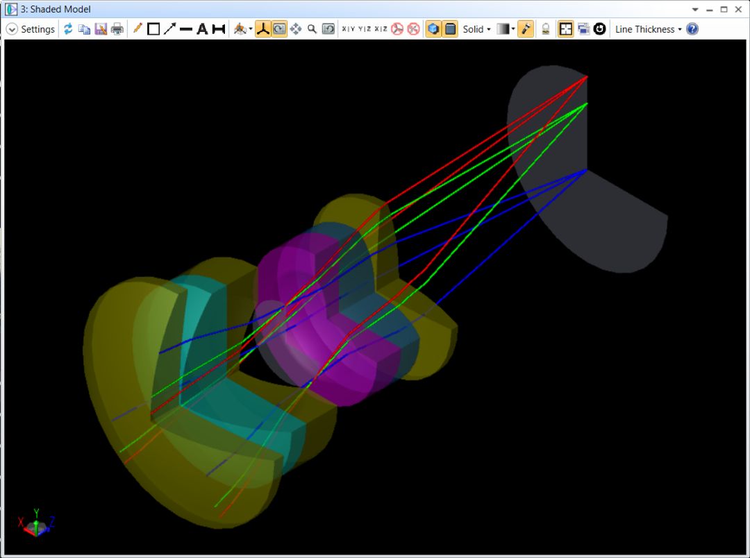 與 2D 橫截面視圖相比,實(shí)體模型具有一些額外的功能。例如,我們可以修改透鏡的顏色和透明度。我們還可以更改模型的方向和應(yīng)用截面視圖。