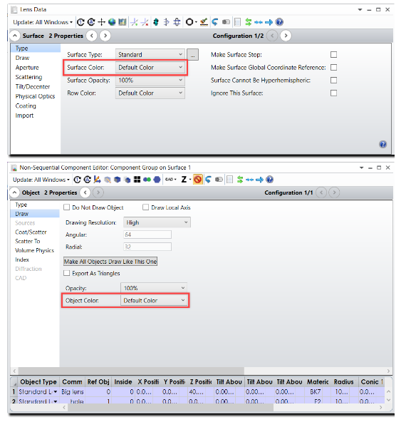 表面(序列)和物體(非序列)可以在 OpticStudio 的實(shí)體模型圖中顯示為不同的顏色。