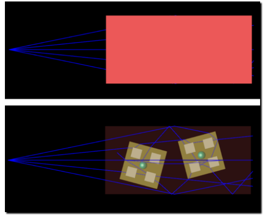 您還可以在實(shí)體模型中將表面和物體設(shè)置為半透明,這樣可以更輕松地查看光線路徑。否則,體積內(nèi)部的光線軌跡會(huì)無(wú)法被查看到,完全或部分在其他物體內(nèi)部的物體也會(huì)不可見(jiàn),并且在各種視圖旋轉(zhuǎn)位置都無(wú)法看到其他物體后面的物體。