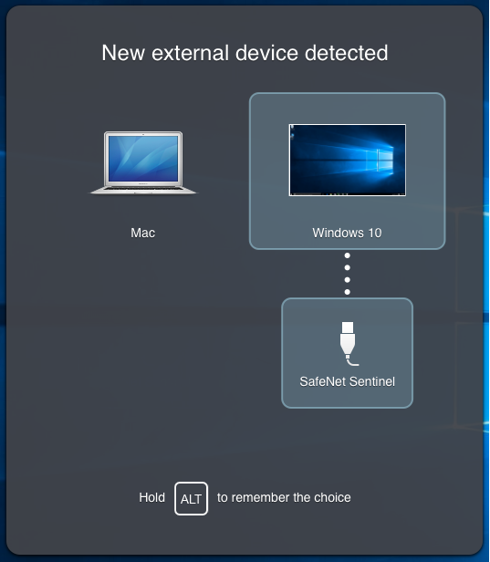 在Parallels Desktop中,當(dāng)您插入U(xiǎn)SB密鑰這樣的外部設(shè)備時(shí),您可能需要具體指定它與哪一個(gè)系統(tǒng)連接。