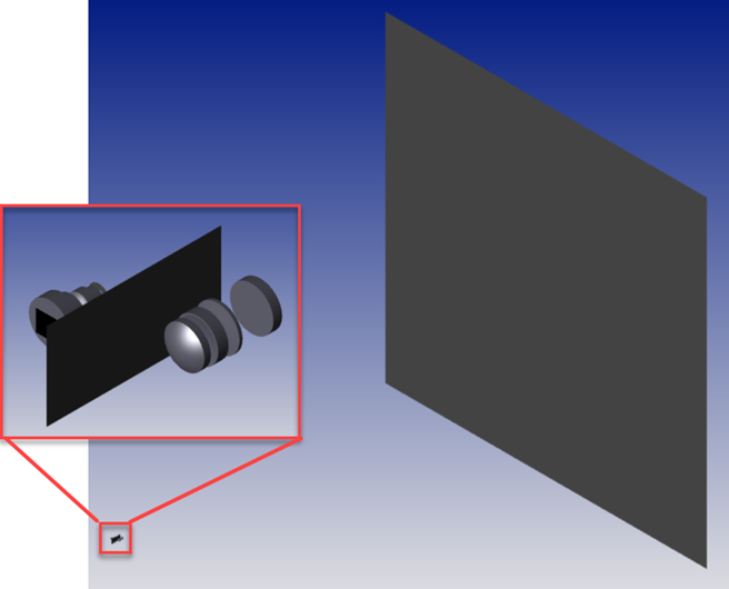 首先,我們來看一下之前研究的非序列模式閃光激光雷達模型,我們對它進行了簡單的修改,只使用光學元件和單個散射壁面(請注意,在本文中壁面已從矩形探測器更改為矩形 2D 表面)。接下來,我們通過文件選項卡…Prepare for OpticsBuilder(File tab…Prepare for OpticsBuilder)打開 Prepare for OpticsBuilder: