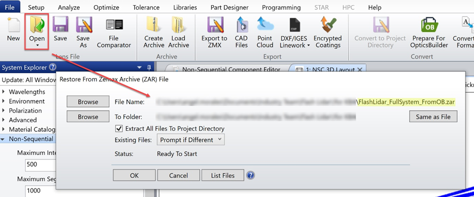 由于.ZBD文件類似于OpticStudio .ZAR存檔文件,因此可以在OpticStudio中將其打開,并完全再現(xiàn)由光機工程師添加的光學和機械元件。