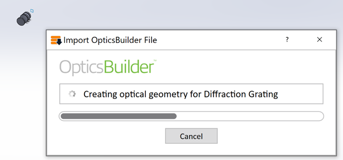 一旦創(chuàng)建了 .ZBD 文件,光機工程師就可以將其導入到 OpticsBuilder 中。在安裝了 OpticsBuilder 插件的 CAD 程序中(目前僅支持 Creo),通過打開一個新的裝配體文件即可完成操作。選擇合適的文件后, OpticsBuilder 將開始在您使用的 CAD 程序中生成光學系統(tǒng):