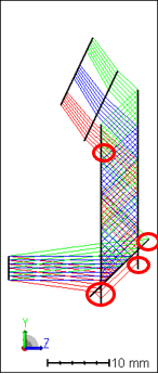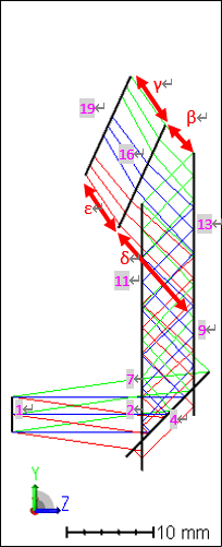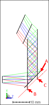首先,我們將防止全息圖與波導(dǎo)的側(cè)面重疊,從下圖你可以看到點(diǎn) A 在表面 9 的右邊。利用 RAGZ 求出曲面 4 上點(diǎn) A 的位置,并約束其 Z 位置小于曲面 9 的 Z 位置。其次,從波導(dǎo)入口到全息圖的距離必須是正值,使用 PLEN 操作數(shù)確保這個(gè)長(zhǎng)度應(yīng)該大于 0。