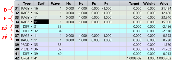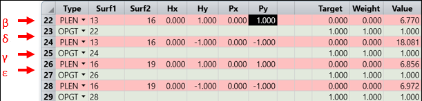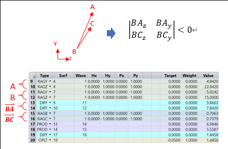 下一步是確保光線在表面 13 和 16 之間以及表面 16 和 19 之間的傳播可行,這需要限制所有相關(guān)的 PLEN 操作數(shù)都為正數(shù)。