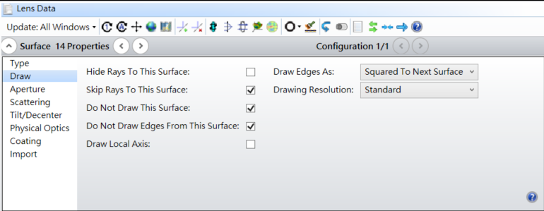 為了更清晰地觀察系統(tǒng)視圖,對(duì)表面 14 的表面屬性 (Surface Properties) …繪圖 (Draw ) 做如下更改: