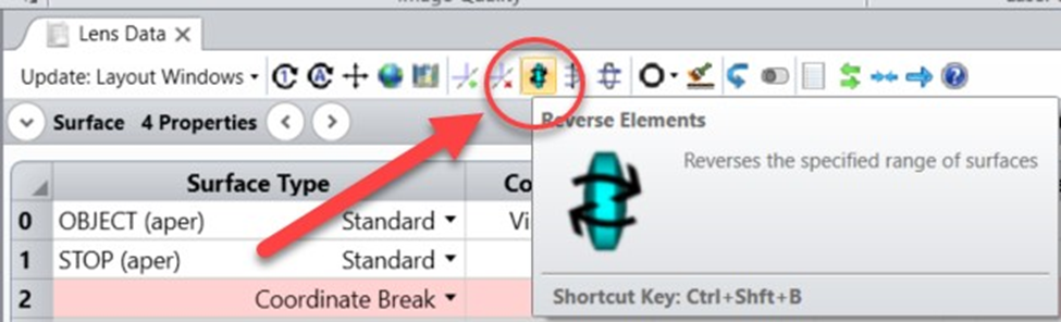 翻轉(zhuǎn)系統(tǒng)不是直接一步到位的。鏡頭數(shù)據(jù)編輯器中的元件翻轉(zhuǎn)工具有一些限制,HUD系統(tǒng)肯定會(huì)破壞這些限制,因?yàn)樵撓到y(tǒng)包含坐標(biāo)間斷和非標(biāo)準(zhǔn)表面。
