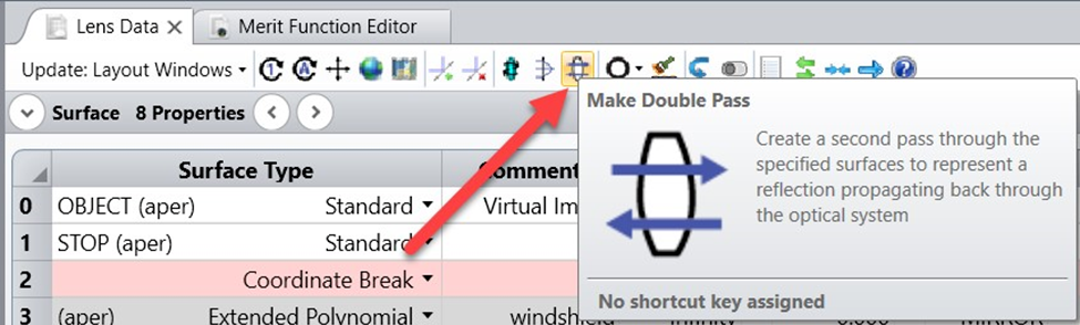 ?在鏡頭數(shù)據(jù)編輯器中,選擇Make Double Pass工具: