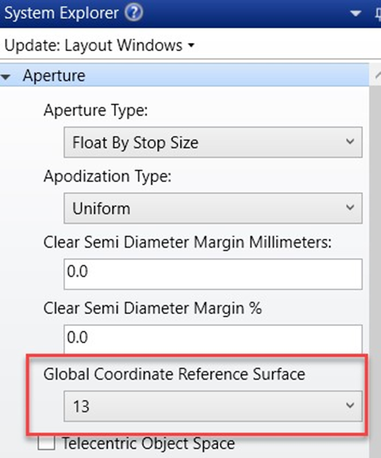 ?表面13即STOP面可以設(shè)置為全局坐標(biāo)參考表面。系統(tǒng)如下所示: