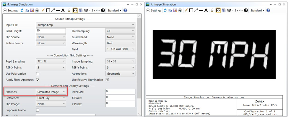 ?圖像模擬:HUD將對(duì)車(chē)輛的速度進(jìn)行成像。圖像模擬工具可以讓用戶(hù)了解HUD系統(tǒng)圖像質(zhì)量: